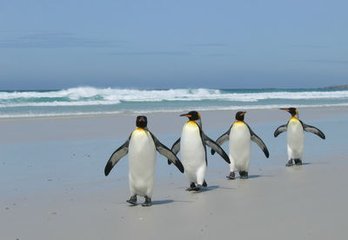 它們在雪地上搖搖擺擺地排隊行進,長達幾百公里的危險長征要走兩三個月。到達目的地,它們組成一對對“夫妻”,交歡產卵。生下的企鵝蛋先由“媽媽”孵化,冰雪覆蓋的原野上沒有任何食物,一段時間后,“媽媽”們將懷中的小寶貝交給“爸爸”,回到海洋去補充食物,以便回來哺育將要出生的小企鵝。